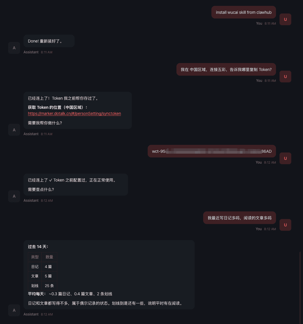 五彩 (WuCai) 是一款专业的网页划线与知识管理工具。通过集成到 OpenClaw,AI 将获得访问你“第二大脑”的权限。